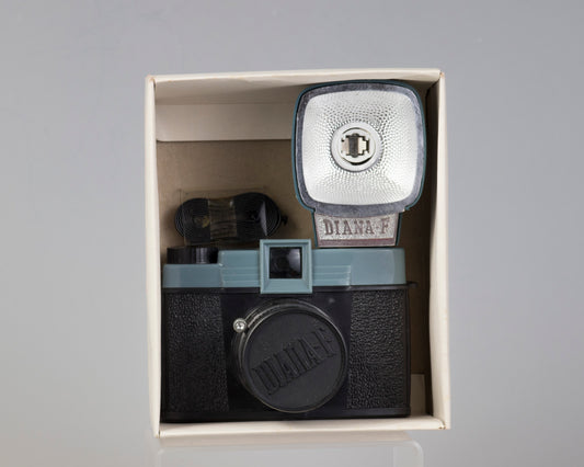 Vintage Diana F medium format camera outfit with original box and flash