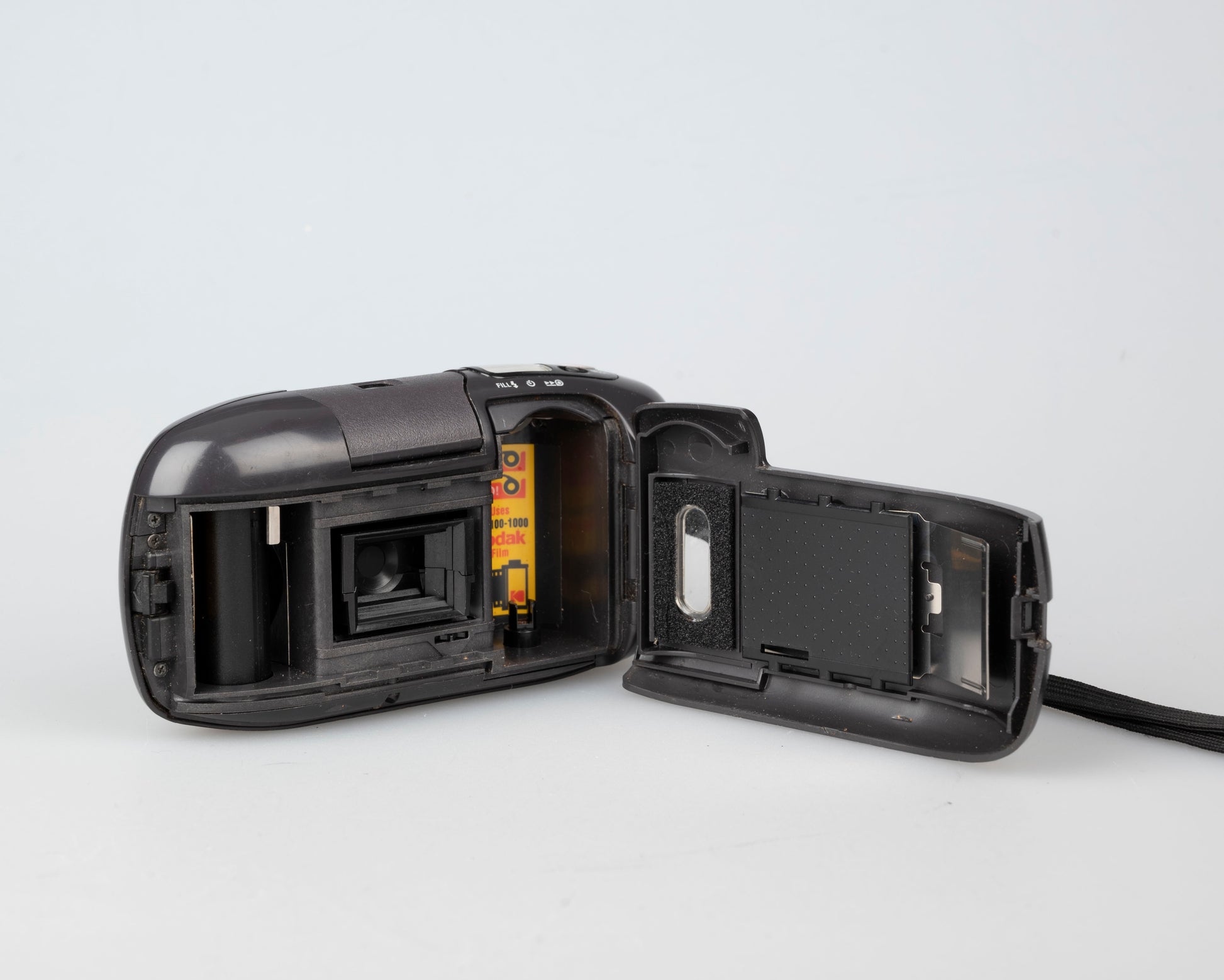 Cet appareil photo enroulera complètement le film lorsque vous le chargerez pour la première fois ; le film se rembobinera sur le rouleau pendant que vous filmez. Il s'agit d'une fonctionnalité pratique pour plusieurs raisons : premièrement, vous n'avez pas à attendre que le film se rembobine lorsque vous avez terminé un rouleau ; et deuxièmement, si la porte du film est accidentellement ouverte (par exemple par un ami ou un frère curieux), les photos que vous avez prises sont déjà en toute sécurité dans le rouleau de film (de sorte que seul le film exposé serait ruiné).