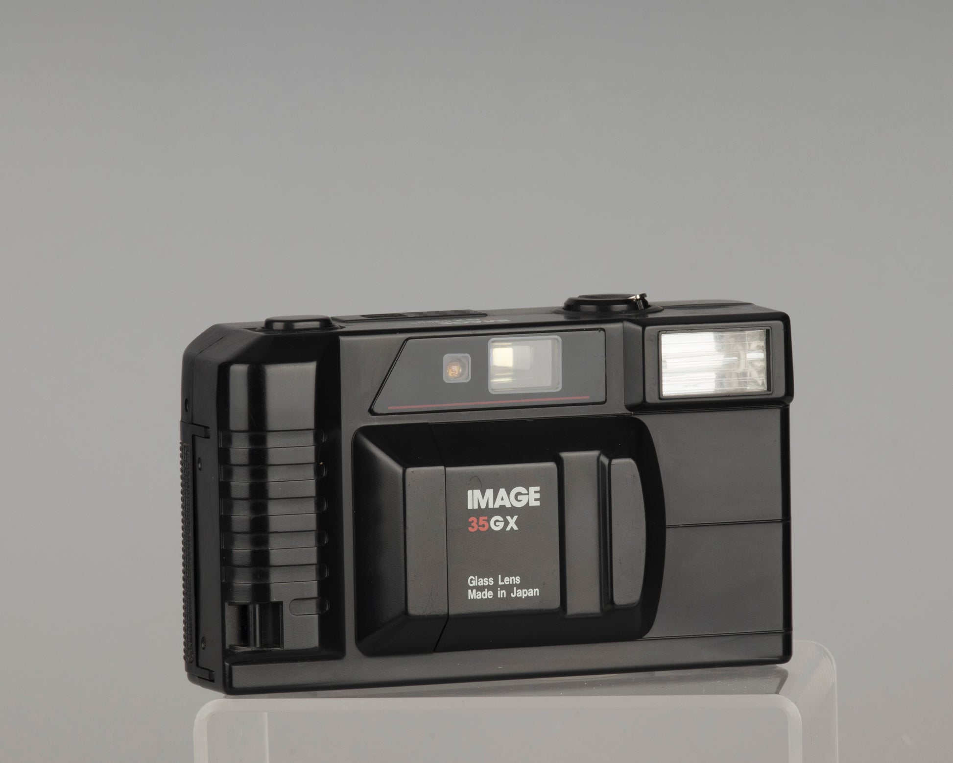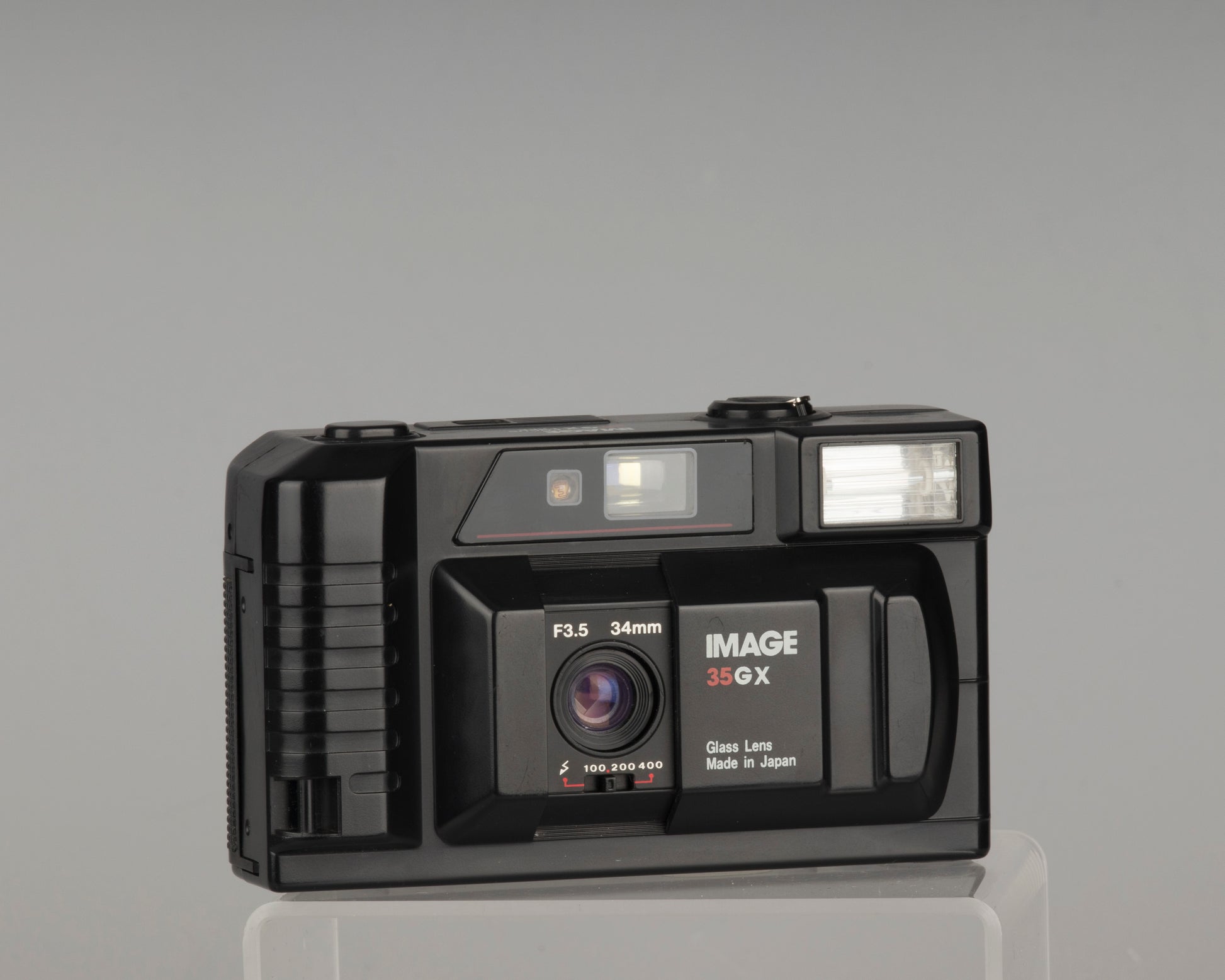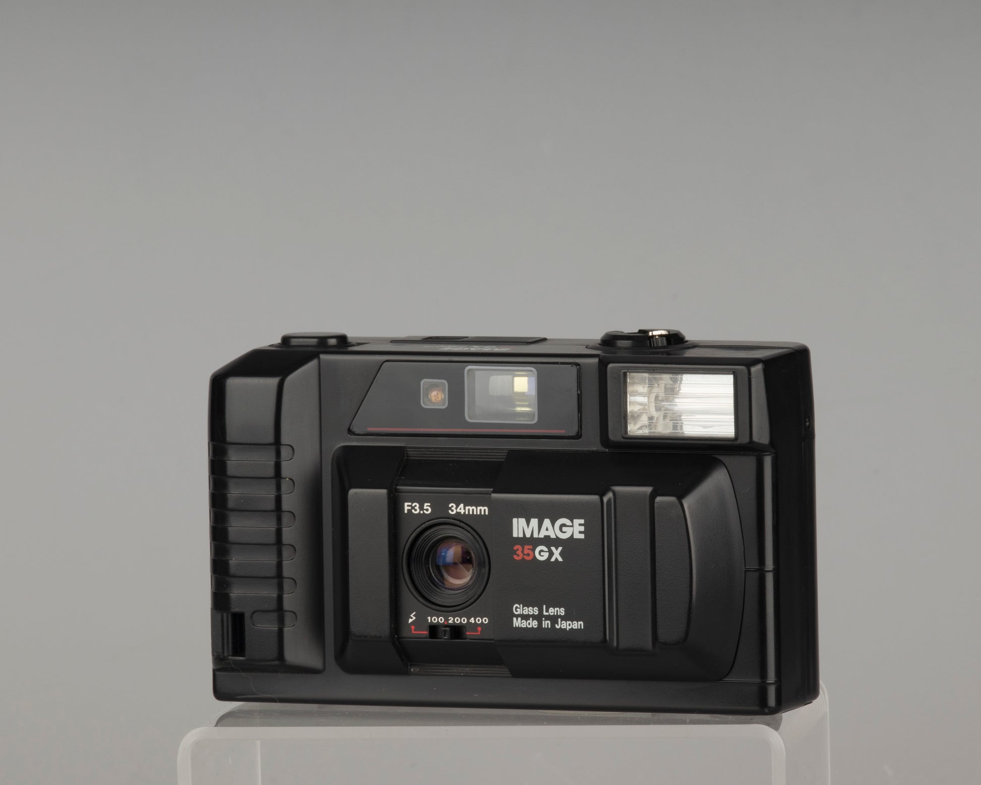 The Image 35GX is 35mm point-and-shoot from the 1980s with a 34mm f3.5 autofocus lens. We believe this camera was made by Halina/Haking and it appears to be quite similar to Halina AF8000 camera except it uses a fixed focus lens rather than autofocus.