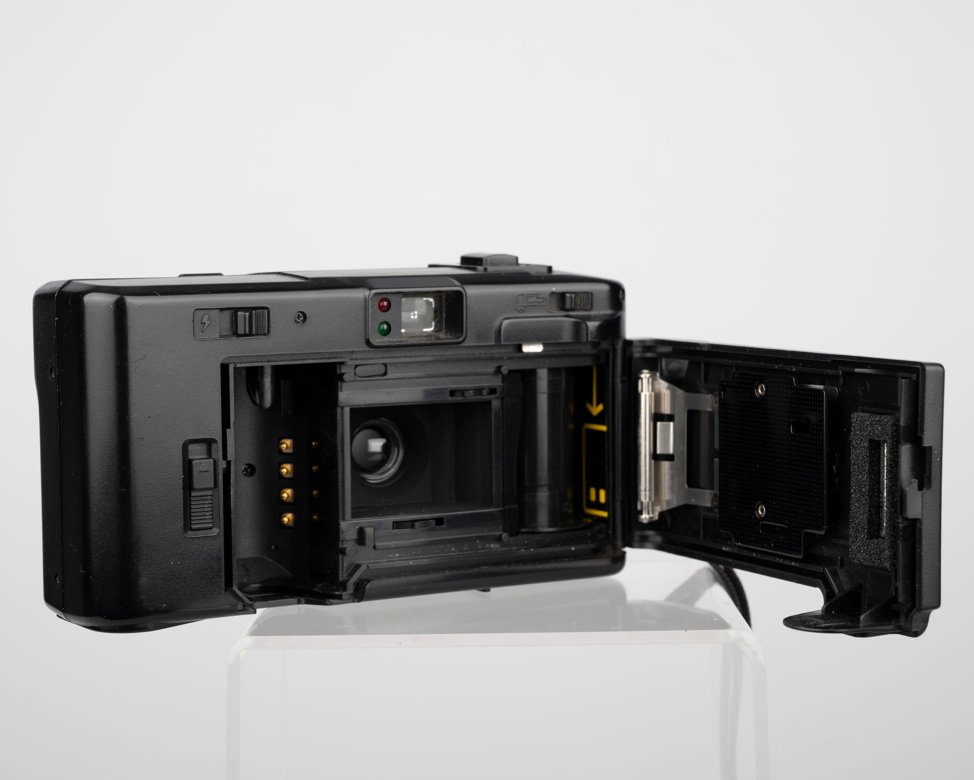 The Vivitar PS:35 Auto Focus DX is a nice 35mm point and shoot camera from 1980s. This camera will only fire the flash if you switch it on (always a favorite feature of ours); there is a low light warning LED.